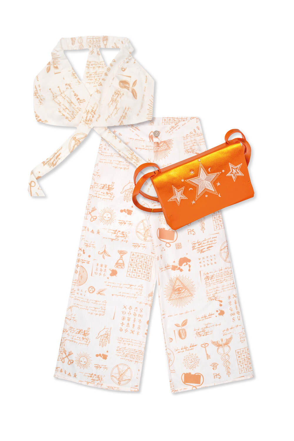 Pack: Crop Top Orion + Pantalón Corvus Naranja + Bandolera Grulla
