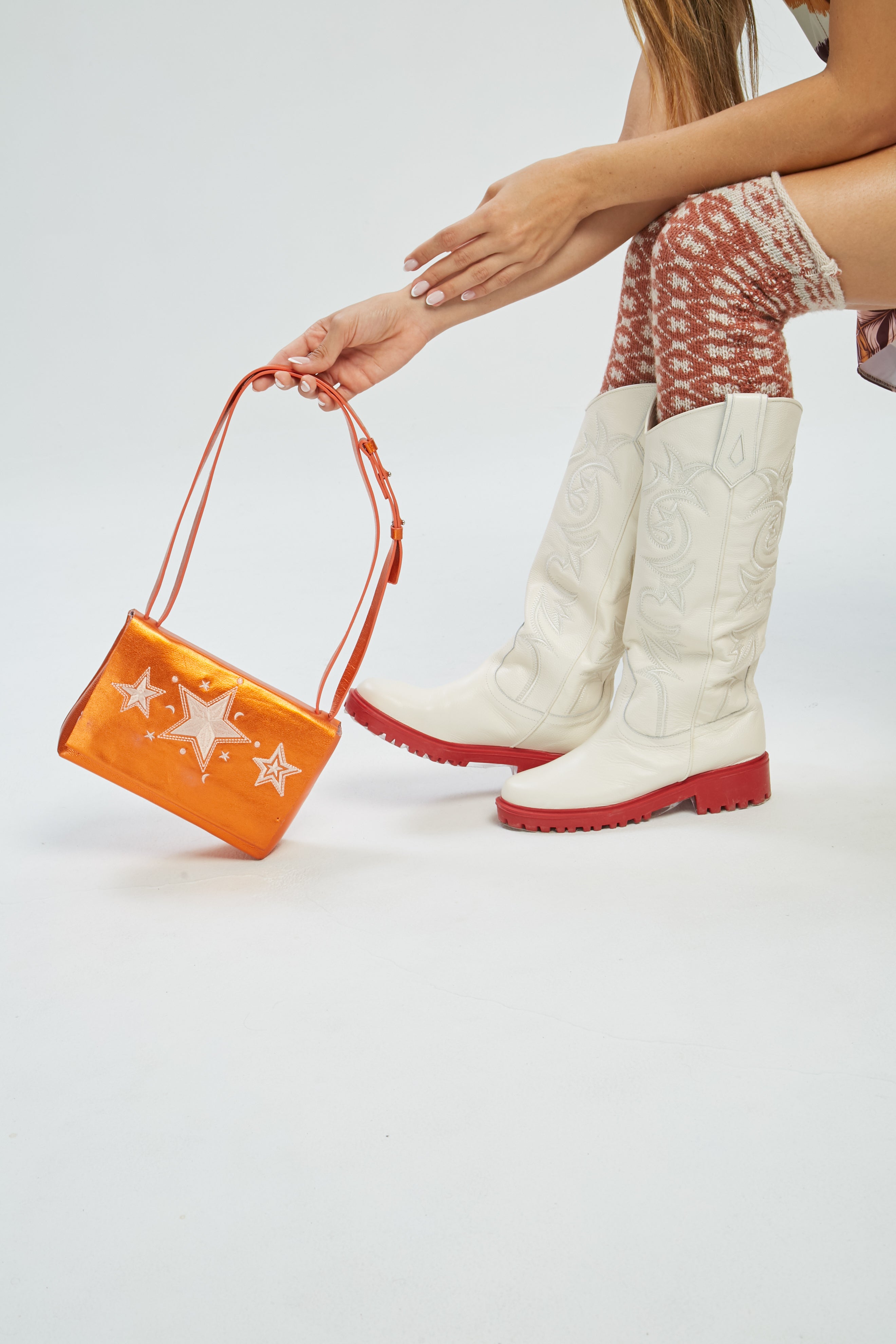 Eleva tu estilo con las botas Constelación en un elegante color beige, perfectas para la mujer mexicana empoderada, arriesgada y contemporánea. Estas botas de caña alta combinan un diseño texano con un toque moderno, haciéndolas ideales para cualquier ocasión.