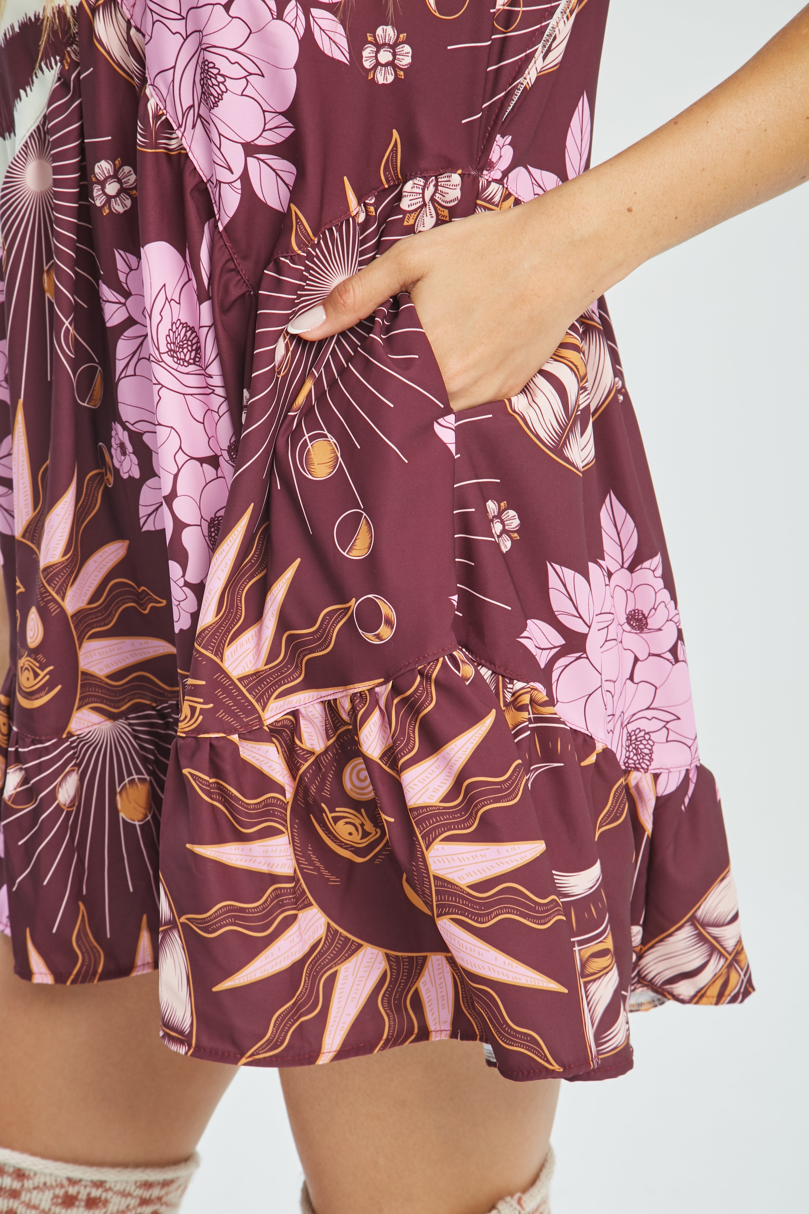 Confeccionado en 100% poliéster, su tejido ligero y fluido permite que te muevas con gracia, mientras que el estampado floral aporta un aire romántico y divertido.