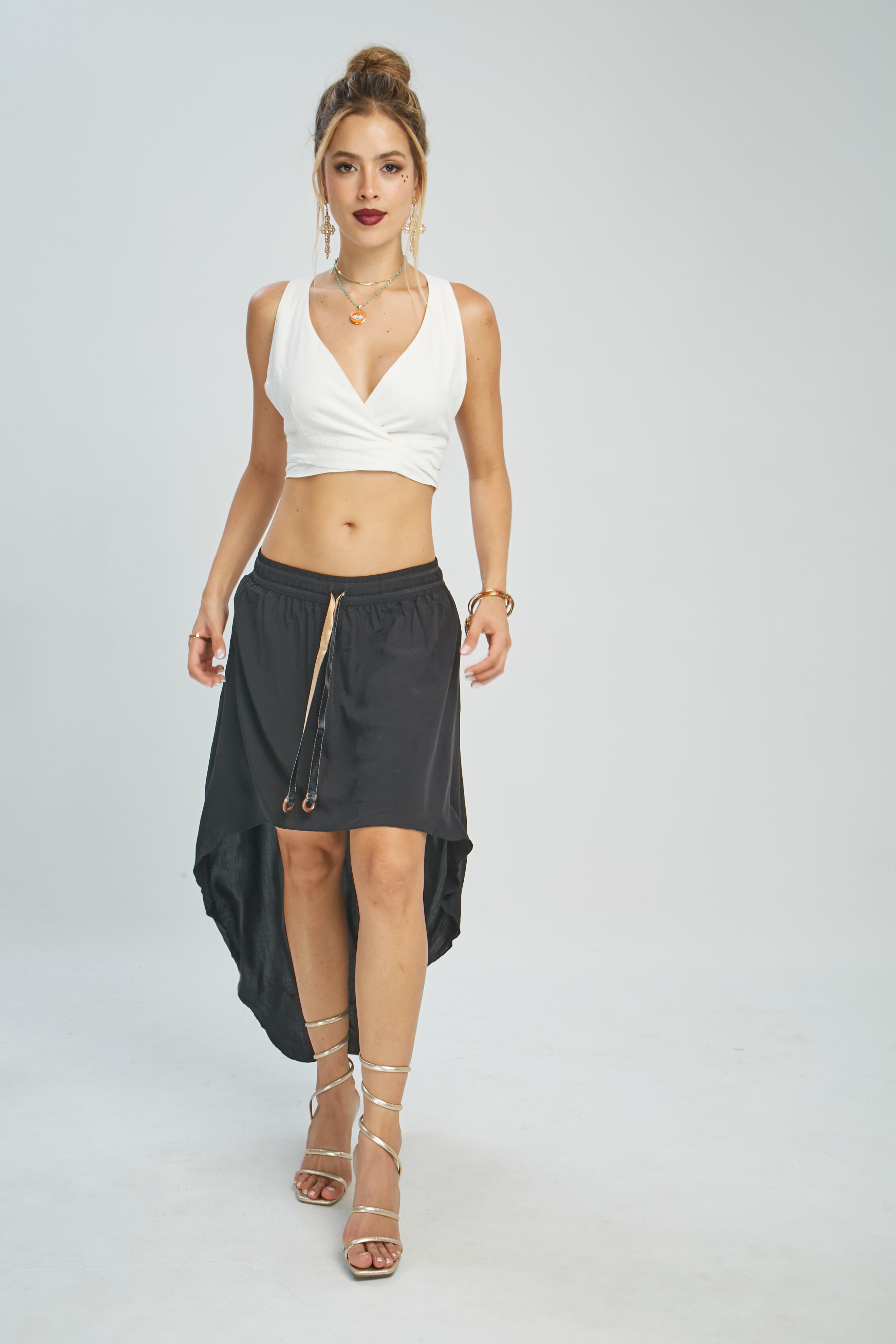Aporta un toque de sofisticación a tu outfit con la falda Orion en un elegante color negro. Esta falda de línea cola pato es la elección perfecta para la mujer contemporánea que desea combinar estilo y comodidad en cada paso.