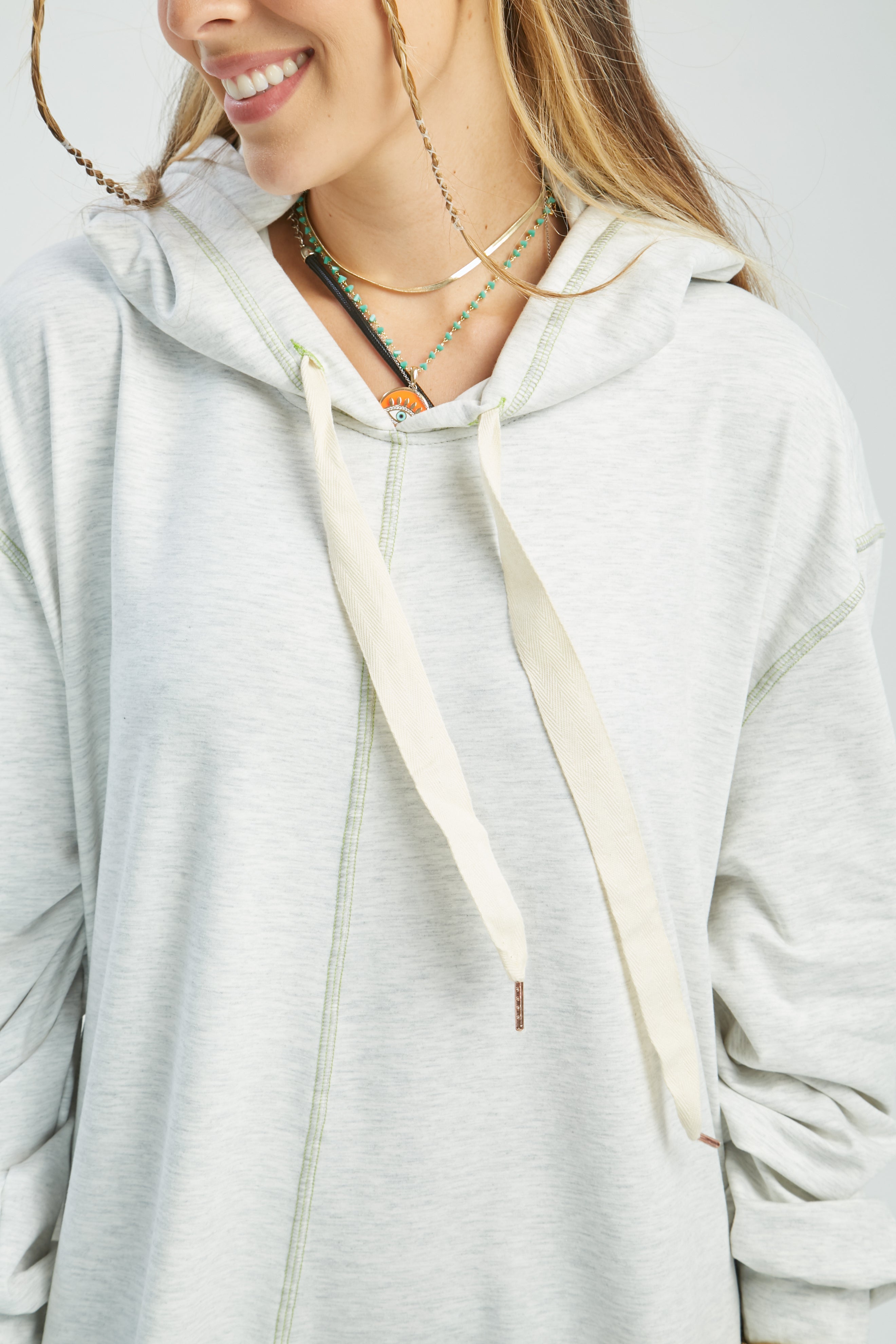 Confeccionada en 100% algodón, ofrece una suavidad excepcional y una caída relajada que se adapta a tu figura. Los detalles como el cordón ajustable en la parte inferior añaden un toque de originalidad y permiten personalizar tu look, mientras que los bolsillos laterales son ideales para llevar lo esencial.